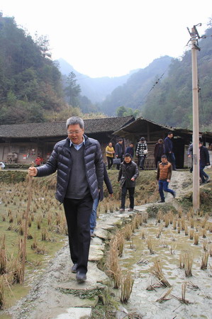 腊月二十八(2017年1月25日),春节的气氛日益浓厚。踩着泥泞的小路, 党委书记黄政、副书记左益代表师生来到黔江区石会镇梅子村,在黔江区副区长孙天明等的陪同下看望和慰问10户贫困村民,送上节日的祝福。学校党委宣传部、工会、区扶贫办、镇村干部也一并陪同看望慰问。