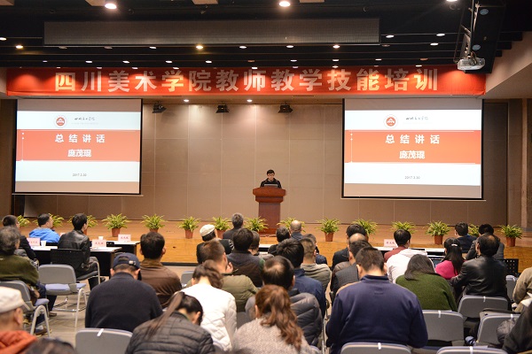 庞茂琨校长对培训做了总结讲话。庞茂琨回顾了学校近期的审核评估迎评工作,充分肯定了全体教师所做的努力,号召大家继续在课程建设、教改研究、成果凝练方面积极投入,为川美人才培养质量的持续提高贡献力量。