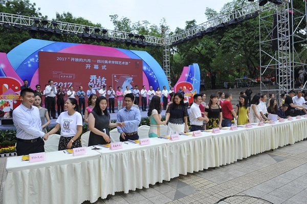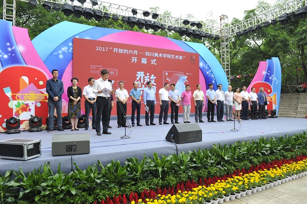 (文:公共艺术学院;图:党委宣传部 杨勇)6月2日上午10时,2017“开放的六月—— 艺术游”开幕式在 黄桷坪校区隆重举行。开幕式由 党委书记黄政主持。重庆市文化委员会副主任朱茂,重庆市旅游局副局长秦定波,中共九龙坡区委书记丁洪,区政府区长、高新区管委会主任刘小强,区人大常委会主任胡奇明,区政协主席郑和平等领导, 院长庞茂琨、党委副书记左益、副院长张杰、纪委书记苟欣文,及九龙坡区相关部门、街镇主要负责人和 机关、各院系领导等出席开幕式。