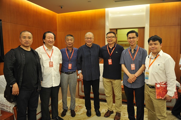 党委书记黄政介绍了来自各界的领导和嘉宾。在京有关单位、文化机构和重庆市有关领导有:全国政协常委、原中央美术学院院长靳尚谊、中国文联副主席、书记处书记左中一先生、新华社北京分社党组书记、社长梁相斌先生、文化部艺术司副司长周汉萍女士、教育部人事司副司长殷长春先生、国家信息中心副主任马忠玉先生、国家艺术基金管理中心副主任张堃先生、文化部中外文化交流中心主任于芃先生、中国美术家协会党组书记徐里先生、中国美术馆馆长、中国美协副主席吴为山先生、中国国家画院院长杨晓阳先生、北京市文化中心基金总裁姬连强先生、中国美术家协会副主席何家英先生、原 院长罗中立先生、重庆市文化委副主任朱茂先生、重庆文联党组书记陈若愚先生、保利文化集团副总经理周游先生、台湾山艺术基金会董事长林明哲先生,以及中国文联、中国美协、中国美术馆、中国国家画院、中国艺术研究院、民生美术馆、保利文化集团等北京文化单位、企事业单位领导。