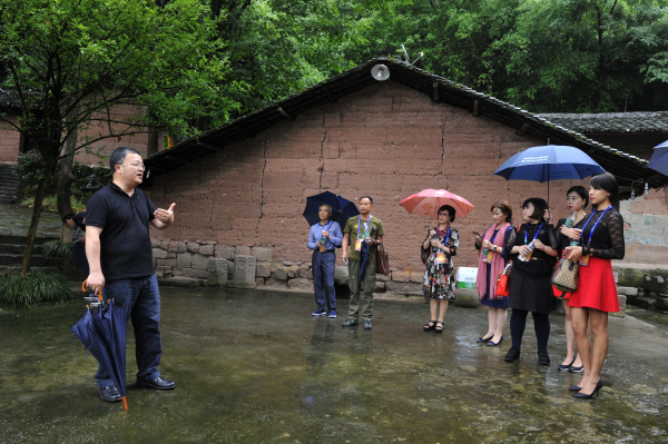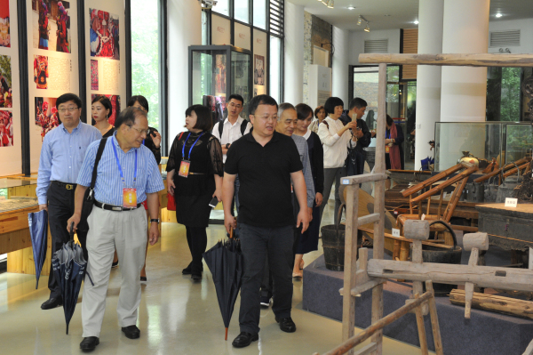 党委副书记左益一同与嘉宾们边参观边友好交谈,并向他们介绍我校近年来所取得的教学成果和发展的新成就。在农家老院子,党委副书记左益向嘉宾们详细地介绍了我校建校历史、办学理念与特色和虎溪校区建设规划理念以及近期我校在北京正在展出的重大展览“时代质感—— 作品展”和在校内展出的“2017年创作/设计毕业生作品展”的情况。