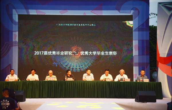 毕业典礼上,举行了隆重的表彰仪式。副校长张杰、侯宝川分别宣读了市优、校优毕业生表彰决定,纪委书记苟欣文宣读了学院奖表彰决定、副校长彭林权宣读了收藏作品名单。与会校领导为获奖毕业生颁奖。