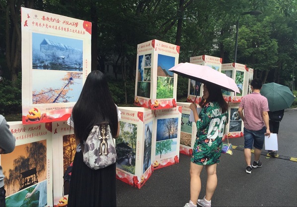 为喜迎中国共产党 第二次代表大会,积极营造热烈校园氛围,学校举行了“喜迎党代会 共筑川美梦”系列展览。6月中旬至今,学校举行“美丽四季 构筑精神家园”校园摄影展、“主题创作 彰显信仰之美”创作精品展,分别在大学城校区、黄桷坪校区校园内进行了展览。