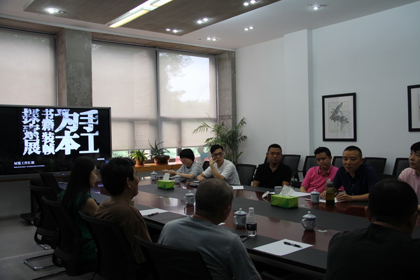 7月5日上午10点,由中国美术家协会插图装帧艺术委员会与 共同主办的“手工为本——书籍装帧探索展”展览工作汇报会在虎溪校区二会议室召开。中国美协插图装帧艺委会主任高荣生、秘书长武将、中国美术学院教授李勇一行到会交流指导。我校校长庞茂琨、副校长焦兴涛、设计艺术学院院长段胜峰、版画系书记陈斌、版画与印刷教研室主任谭璜及相关工作负责人员参会并认真听取意见。