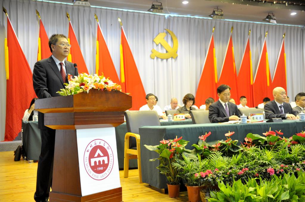 党委书记黄政受中共 第一届委员会委托作题为《加强党的领导,坚持立德树人,坚定不移地朝着国内一流、国际知名的美术学院目标奋勇前进》的党委工作报告。