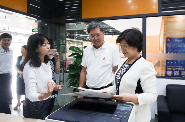 在我校大学生文化创意微型企业园,黄政书记就我校大学生创新创业的整体工作情况做简单介绍。张义珍副部长一行依次参观了园区内的重庆小叶朴文化传播有限责任公司、瞳画影视传媒工作室、重庆漫达文化传播有限责任公司、重庆寨上文化传播有限公司,并与创业学生亲切交流,认真了解各团队的发展情况及发展中遇到的问题,对我校大学生创新创业工作给予了高度肯定。