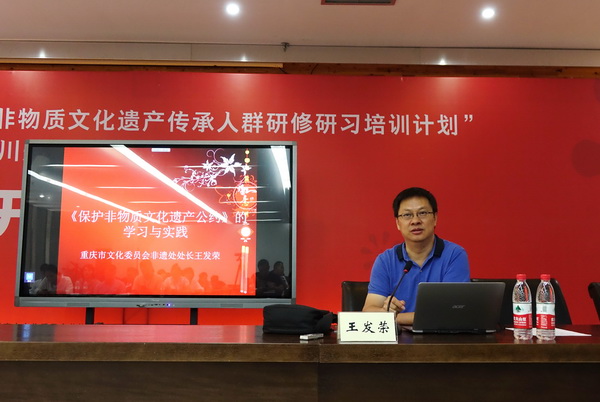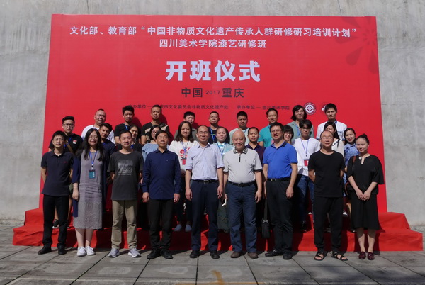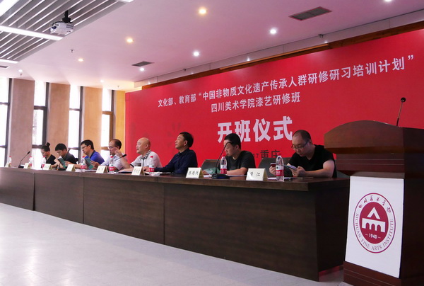 9月12日上午,由重庆市文化委员会主办、 承办的“文化部、教育部中国非物质文化遗产传承人群研修研习培训计划 漆艺研修班”开班仪式在我校虎溪校区举行。重庆市文化委员会副主任钟建波,市文化委非物质文化遗产处处长王发荣, 副校长张杰、纪委书记苟欣文及相关部门、院系负责人出席了开班仪式。