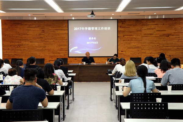 为贯彻实施新的《普通高等学校学生管理规定》(教育部第41号令),学校近期系统清理和全面修订完善了学籍管理及其他内部各项管理制度。为将制度规定落实到管理实践中,结合新文件要求和学生管理中的突出问题,9月18日及9月20日下午,学校举办专题培训会,全体教学秘书和学生辅导员参加了培训学习。副校长张杰出席了培训会。