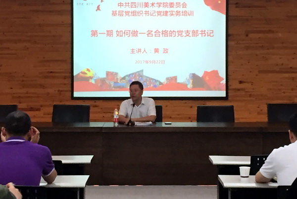 黄政强调,做一名合格的党支部书记应该注重以下两个方面:一是提高政治意识。坚定正确的政治立场,在政治、思想和行动上与以习近平同志为核心的党中央保持高度一致;认清政治责任,要把党支部书记作为自己的第一身份,加强理论学习,应学尽学;强化政治担当,敢于亮剑、敢于作为。二是认真履职尽职。要高度重视思想政治建设,坚定信仰,增强信念;要树立围绕中心服务大局意识,努力为迎接本科教学审核评估和第十三届全国美展做贡献;履行党建主体责任,重在打基础、抓规范、创特色、形成亮点,促进成效。