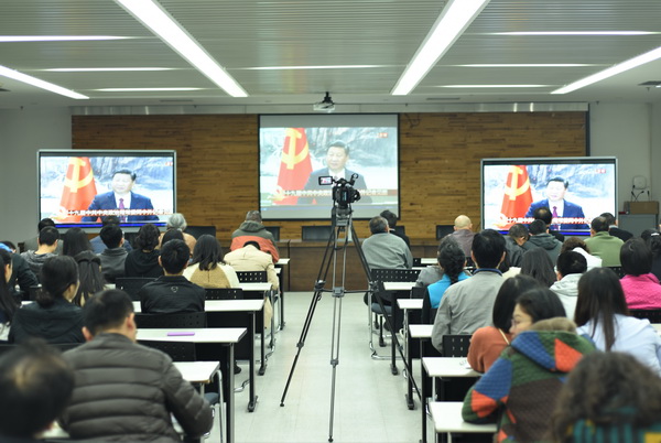 收看直播后,全校师生欢欣鼓舞、精神振奋。师生员工们表示,坚决拥护以习近平为总书记的新一届党中央领导集体,紧密团结在以习近平同志为核心的党中央周围,高举中国特色社会主义伟大旗帜,认真学习贯彻习近平新时代中国特色社会主义思想,以实际行动为实现党的十九大提出的战略目标和各项任务而努力奋斗。广大师生坚信,在新一届中央领导集体的带领下,中国人民的生活一定会一年更比一年好。