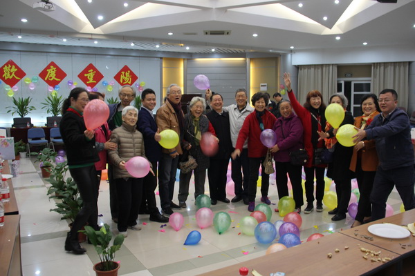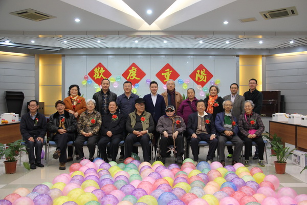 九九重阳,寓意长久长寿,校长庞茂琨携学校党政领导为年满70、80、90岁的老寿星佩戴红花,送上生日祝福,祝愿老寿星节日快乐,健康长寿。