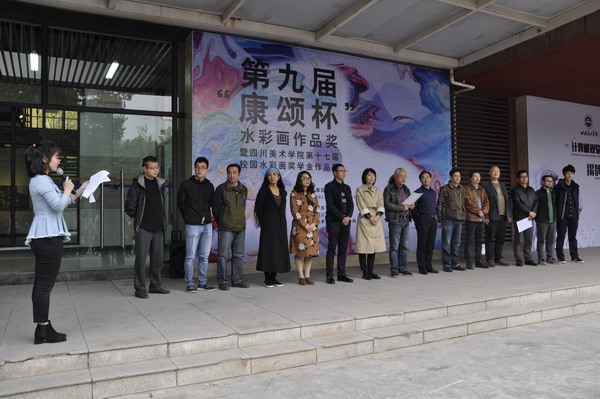 苟欣文宣布本届“康颂杯”水彩画作品展暨 第十七届校园水彩画作品展开幕。