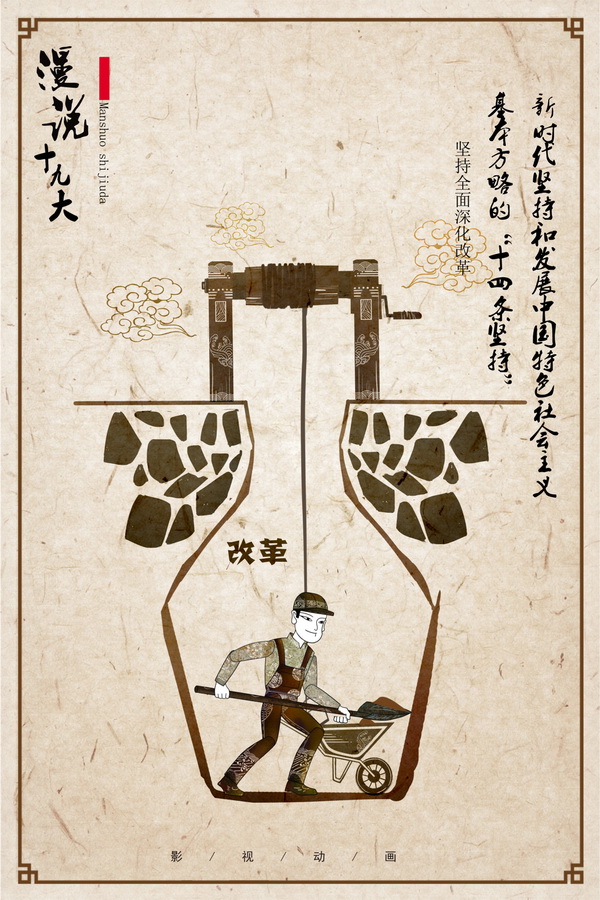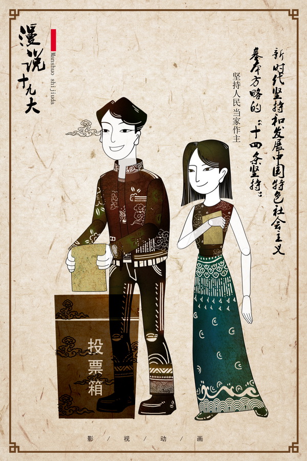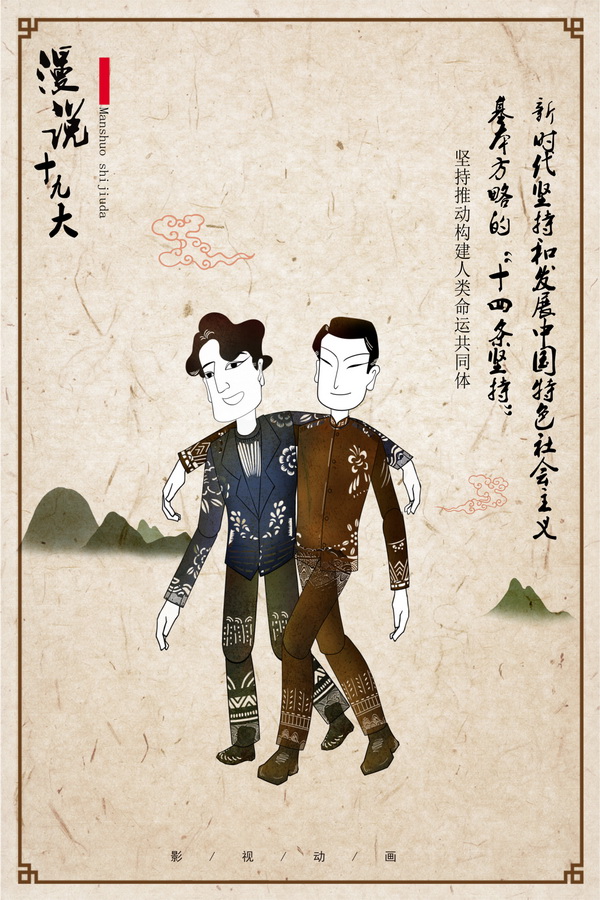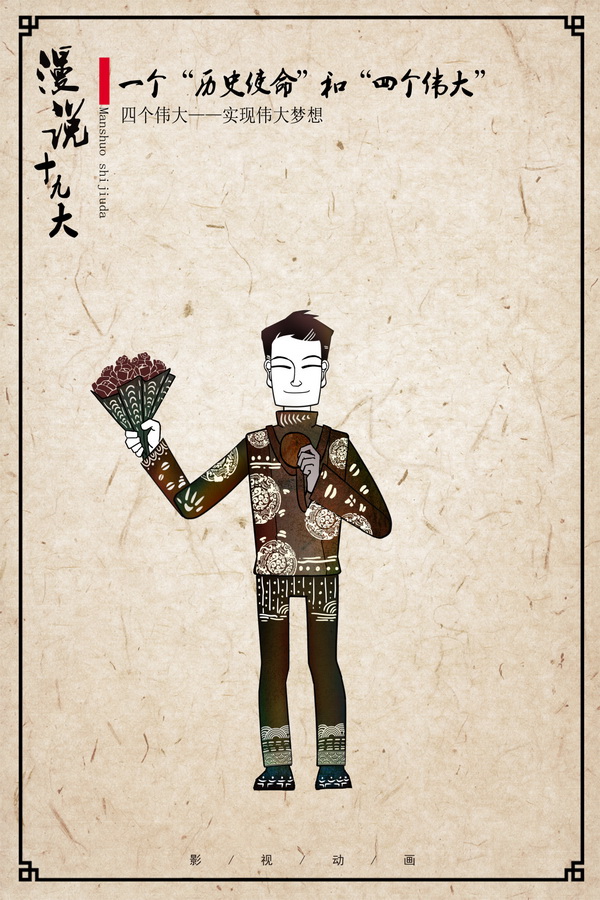 不忘本来、吸收外来、面向未来。党的十九大要求推动中华优秀传统文化创造性转化、创新性发展。影视动画学院在学习党的十九大精神,开展主题创作中,充分发挥动画的专业优势,结合中国传统文化的表现形式,以皮影动画的方式解读党的十九大精神,富有新意。“在创作思路方面,我们采用的皮影与动画相结合的方式。皮影,其造型线条优美生动,轮廓内部以镂空为主,繁简得宜、虚实相生,是中华民族优秀文化遗产的代表之一。而动画作为新媒体的一个重要手段,具有易于接受、易于传播的特性。皮影与动画的融合,有利于传统文化的艺术元素借助新的传播手段得到传承,更在深层次上使十九大精神主题的宣传收到良好的效果。这是我们在创新动画艺术方面所进行的一次思考和尝试。”在谈及创作思路时,布志国老师如是说。