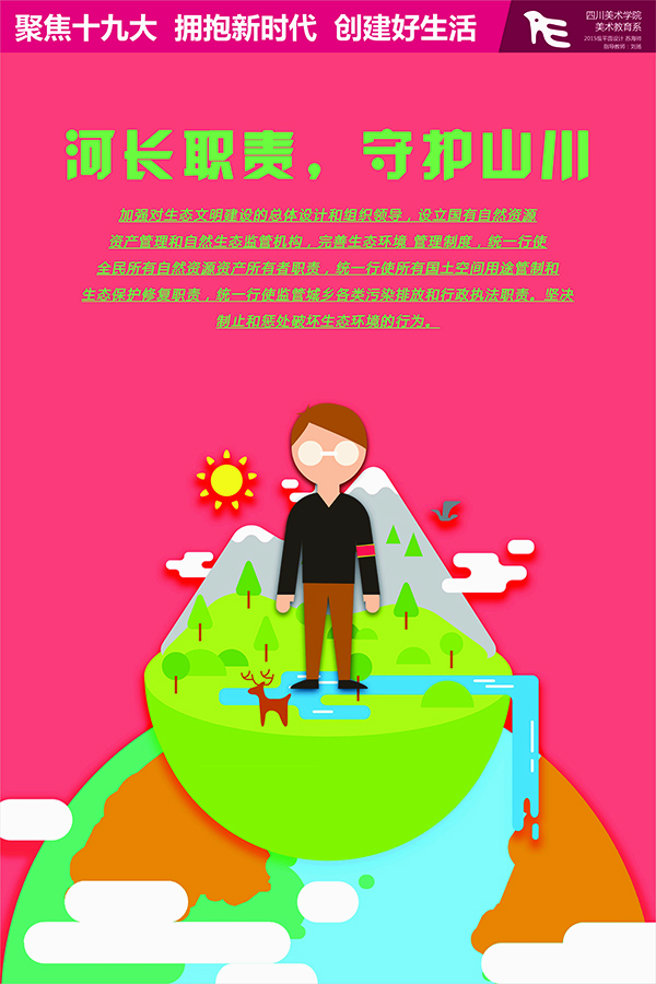 “人民对美好生活的向往,就是党的奋斗目标。”党的十九大报告提出,要坚持在发展中保障和改善民生。美术教育系师生围绕“幼有所育、学有所教、劳有所得、病有所医、住有所居、弱有所扶”等民生内容,创作了系列主题招贴。刘洋等老师从对十九大精神的解读,到内容主题的确立,到设计语言的选择,到画面内容的构成,对同学们进行了悉心的指导,共创作出系列作品50余幅。