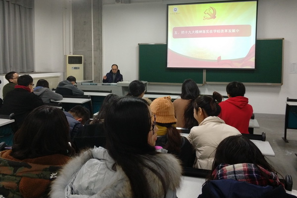 11月29日晚7时,学校党的十九大精神宣讲队成员、建筑艺术系党总支副书记余晖在设计楼c104教室面向建筑艺术系毕业班全体学生和研究生做了十九大精神专题宣讲报告。