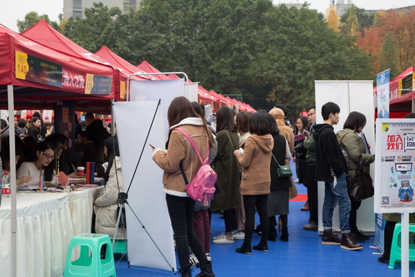为了提高双选会的实效性,我校在双选会现场布置了院系宣传服务区,便于各院系及时为用人单位和毕业生提供服务,促进院系和用人单位之间的深度沟通交流,使院系掌握更多优质用人单位资源,促进毕业生就业工作重心进一步下移。为了方便用人单位和毕业生,设置了广播服务区和公告栏,布置面试区和签约区,提高了信息发布的及时性和有效性,方便毕业生和用人单位面试和签约。同时,11月30日至12月3日,为专场招聘的用人单位提供了专场招聘场地,将有15家单位组织专场招聘会,进行现场宣讲、笔试及面试。