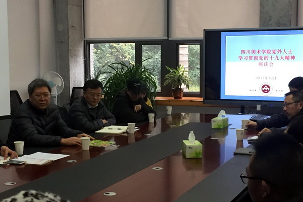 会上,市政协常委梅忠智教授,致公党重庆市委常委、九龙坡区委主委郭晏麟,建筑艺术系主任黄耘,国资校产处副处长谢成开,校知识分子联谊会组长向海涛, 民盟支部主委雷勇斌,美术学系副主任何桂彦等结合党的十九大精神,就文化自信、文艺创作、学科与城市公共艺术建设有效结合、针对贫困区县的精准扶贫、博物馆定向文创设计、乡村旅游带动农村经济、学生医疗需求等方面做了发言讨论。