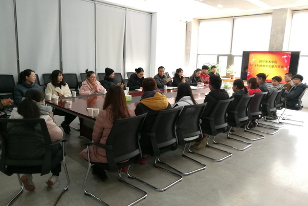 1月16日下午,学校在虎溪校区二会议室召开2018年家庭经济困难学生慰问座谈会。学校党委副书记左益主持会议。学生处、团委、研究生处等部门相关人员以及各院系家庭经济困难本科生、研究生代表20余人参加了会议。