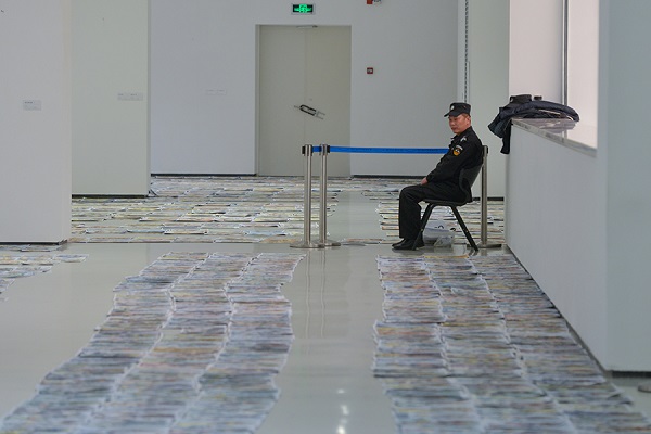 阅卷组打分后,立即离开。工作人员将已评分的试卷再次铺开,由专家复议组进行终审复议。