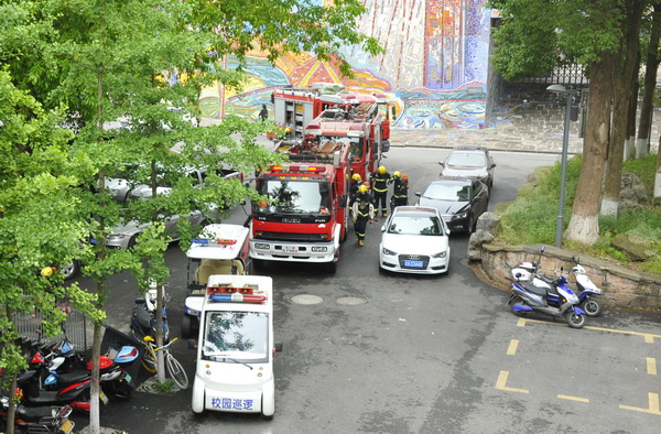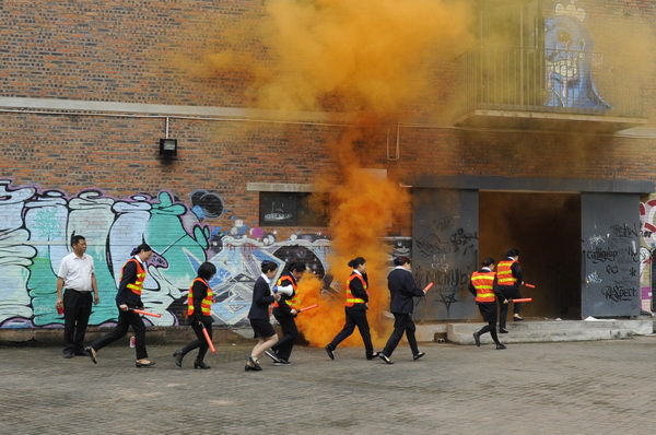 模拟教学楼发生火灾事故的应急疏散演练随后举行。现场师生在大学城消防中队、保卫处工作人员的引导下,于5分钟之内,从教室、办公室有序地疏散到室外。整个应急疏散活动按照既定预案顺利完成,达到了预期目的,师生的防灾减灾意识得到增强,掌握了应急避险的正确方法,熟悉了紧急疏散的程序和线路,提高了突发公共事件下的应急反应能力和自救互救能力。
