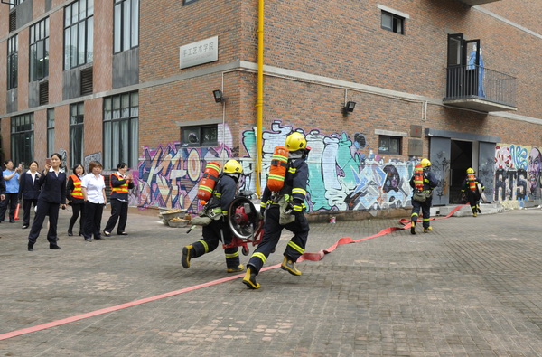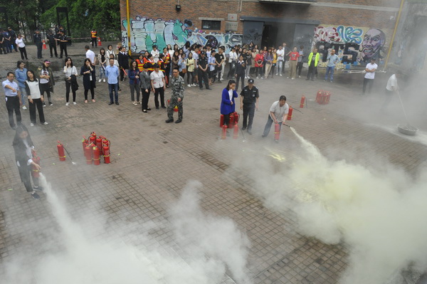 何海粟对应急疏散演练各流程进行了点评,并从专业角度为在场师生讲解了火灾、地震等灾害来临时的疏散要领,示范灭火器的操作方法。在场师生观摩了公安消防机关的各类抢险救援器械和设备,亲身体验了使用干粉灭火器扑灭初期火灾的过程。