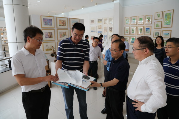 6月6日下午,重庆市政协副主席,民盟中央常委、重庆市委会主委吴刚一行到我校黄桷坪校区调研文创产业。九龙坡区委书记周勇、区政协党组书记郑和平、区人大常委会副主任刘建, 党委书记黄政、公共艺术学院班子成员等陪同调研。
