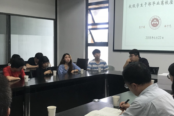 6月22日下午4点30分,学校在第三会议室举行校级学生干部离校座谈会,校党委副书记左益出席会议,学生处、团委负责人及相关指导老师,毕业及现任校级学生干部约30余人参会。会议由团委副书记吴倩主持。