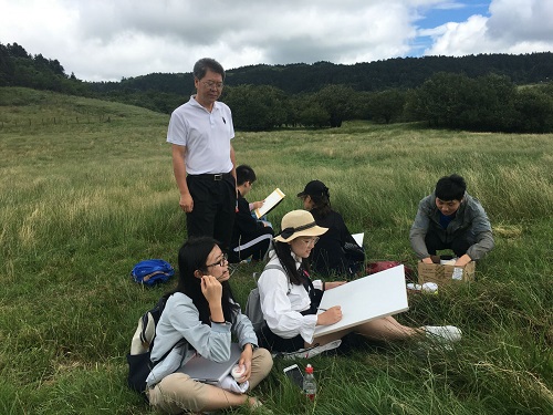 在美术教育系2018艺术创作“助力旅游产业发展”赴武隆区仙女山镇市级专项社会实践工作点,黄政书记与同学们亲切交谈,了解活动的进展,关心同学们在活动期间的困难,观看了同学们的水彩画、油画的绘画创作过程,并对同学们提出了希望和要求。美术教育系“三下乡”社会实践团队,紧密结合艺术院校优势和特色,充分发挥学生所学专业知识,以文化艺术助力仙女山镇旅游产业发展,走进仙女山大草原、天坑寨子等景区进行绘画写生与摄影创作,在明星村进行“运动”主题文化墙绘制,探望孤寡老人,播放红色主题电影,并在仙女山镇政府广场举行了党的十九大精神和纪念改革开放四十周年主题招贴设计、仙女山镇绘画写生成果汇报展。