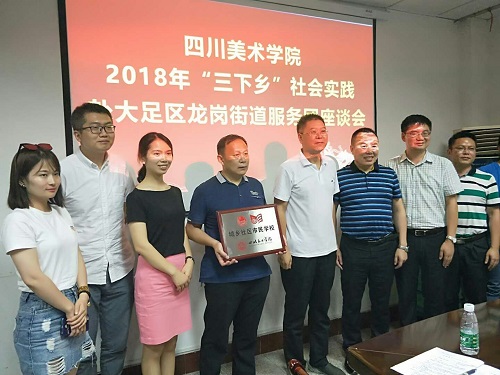 在公共艺术学院“教育关爱服务团”大足区龙岗街道实践点,黄政冒着酷暑调研川美学生“三下乡”社会实践工作。大足区副区长周虹等陪同调研。黄政先到龙岗街道学坝社区慰问了在此开展暑期“三下乡“社会实践活动的全体师生。随后在龙岗街道办事处召开了座谈会。志愿者们畅谈了本次活动的心得,一致认为这次活动十分有意义,能将自己的专业知识运用到实践中去,以此回报社会。黄政代表学校感谢龙岗街道在此次活动中对人才培养的支持,表示学校将与大足区持续深入地开展战略合作,为大足的建设发展作出贡献。龙岗街道办事处党工委书记罗登才和团区委副书记任春燕先后发言,表示希望加强校地合作,搭建新平台,开展新局面。黄政代表学校向龙岗街道学坝街社区授牌“ 社会实践基地”。