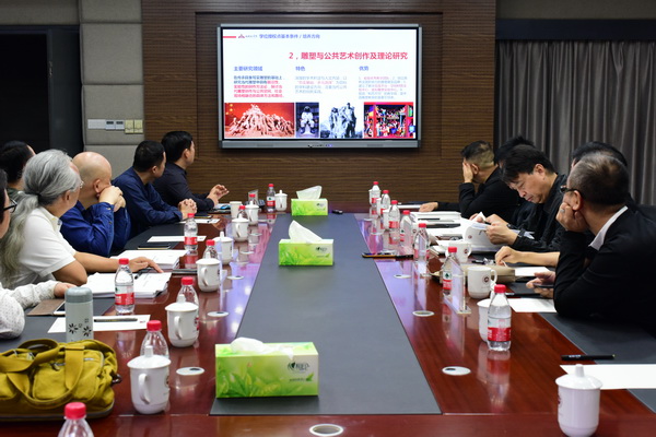随后,美术学、设计学评估专家组分别开展评估工作。美术学学位点王朝刚代表美术学学科带头人庞茂琨校长,设计学学科负责人段胜峰分别向专家组详细汇报了学位点的基本情况、人才培养情况及自评情况。专家组通过认真听取汇报、仔细审阅自评报告与自评材料、查阅培养方案和文件制度等各类支撑材料、与导师和学生进行座谈等环节,深入了解我校研究生人才培养情况。当日下午,专家组全体成员还考察了美术馆、实验教学中心、图书馆等教学场地和设施。