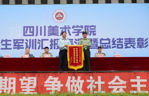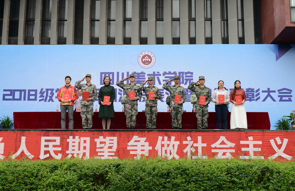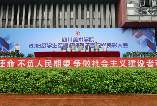 庞茂琨在讲话中首先代表学校党委、行政,对受到表彰的优秀教官、优秀指(教)导员和优秀学员们表示祝贺,向中国人民解放军陆军工程大学通信士官学校全体承训教官们和坚持在一线的教导员、指导员们表示感谢和敬意。他说,为期19 天的军训里,不仅开展了军事技能训练,还举办了国家安全教育、形式政策教育、消防安全、治安防范、交通安全等专题教育以及开展慰问表演、图书馆入馆教育等多项内容,将爱国爱校教育、安全教育融入到训练中,旨在帮助大家尽快适应大学生活。同时,承训部队教官注重把育人与训练相结合,把深入细致的思想政治工作与严格的组织纪律建设相结合,把军事技能训练与实践育人相结合;学校也强化了教导员、辅导员全程参训制度,加强军训期间学生思想政治教育、严格考勤制度和评先评优机制。这对于加强学生军事训练,让学生掌握必备的军事知识、军事理论和军事技能,增强国防观念、国家安全意识以及综合素质具有重要的意义,是实现立德树人根本任务、培养高素质后备兵员和提高教育质量的重要途径。就今后的大学生活,他希望2018级新生们要在自信、艺术的道路上继承和发扬川美精神,践行“二为”、“双百”方针,坚持“以人民为中心”的创作导向,牢记“志于道 游于艺”的校训精神,在激扬青春、开拓人生、奉献社会的进程中书写属于川美人的绚烂篇章!