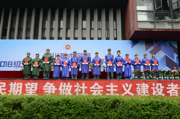 9月27日上午, 2018级学生军训汇报表演暨总结表彰大会在虎溪校区运动场举行。校长庞茂琨、副校长张杰、纪委书记苟欣文、副校长彭林权,中国人民解放军陆军工程大学通信士官学校副政委张立峰大校、基础部主任青山良上校,重庆市沙坪坝区区委常委、人民武装部刘星政委等出席会议。学校军训领导小组成员和各职能部门、各教学单位负责人等参加大会。大会由彭林权主持。