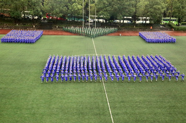 分列式后,进行了军训科目汇报表演。军训团先后进行了军体拳、匕首操、三营队列操等汇报表演。通过单个军人队列动作表演,先后拼出了“志于道 游于艺”“我爱川美”和 校徽等图案。精彩的表演、宏大的场面,赢得了现场阵阵掌声。