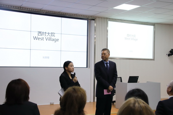 当日下午,论坛主办方邀请国内知名建筑师刘家琨教授来校与代表们交流。刘家琨首先在自己的建筑作品——我校设计艺术馆楼群前为来宾进行了简短的讲解,之后一行人前往智慧教室开展了主题为《西村大院》的小型座谈会。黄政书记为座谈会致辞。刘家琨就西村大院项目设计过程进行了详细介绍,最后大家围绕都市空间、人与环境等话题展开了探讨。