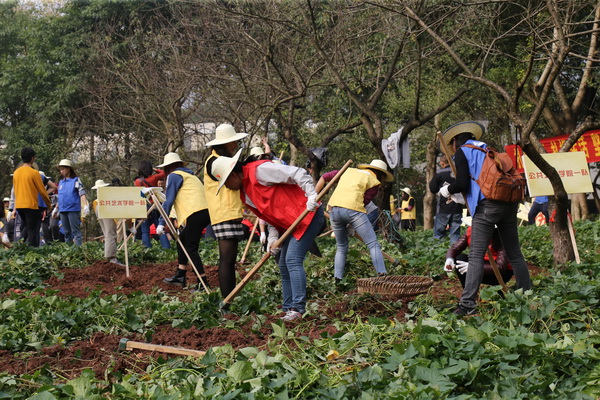 为深入贯彻落实党的十九大精神,学习贯彻习近平总书记在全国教育大会上的重要讲话精神,引导全校师生辛勤劳动、诚实劳动、创造性劳动,将劳动融入生活、融入创作,10月30日下午,由校工会倡导发起,学校党政办、宣传部、团委、后勤基建处、保卫处共同主办的“向劳动致敬”—— 校园文化建设之首届农耕文化体验活动,在虎溪校区荷塘和红薯地举行。校长庞茂琨致辞并宣布活动开幕。副校长张杰、侯宝川、彭林权出席活动。纪委书记、工会主席苟欣文主持开幕式。