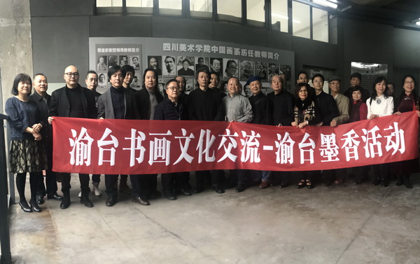 12月3日下午3点,由重庆市人民政府台湾事务办公室、中共重庆市沙坪坝区委、重庆市沙坪坝区人民政府、 主办,重庆市沙坪坝区人民政府台湾事务办公室、 港澳台办公室、 中国画系承办的“书画同源,渝台墨香”书画家笔会在我校举行。