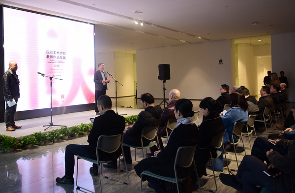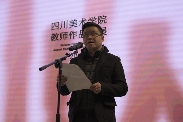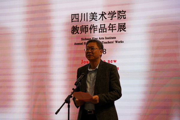 黄政书记在致辞中讲到,国家兴、学校兴,学校和川美人的前途和命运始终与国家、民族的前途和命运紧密相连,川美的同志们一定要与时代同进步,用手中的画笔描绘新的时代。在重庆“行千里”,可以“致广大”,艺术工作者只有“行千里”,才能“致广大”,我们将此作为今年教师作品年展的主题,就是希望全校师生要坚守正道、立足当代中国和重庆现实,抓住新时代机遇,创作出更多的歌颂时代、歌颂祖国、歌颂人民、歌颂重庆的精品力作;就是希望全校师生要坚持文艺为人民服务,为社会主义服务,坚持百花齐放、百家争鸣,坚持创造性转化、创新性发展,不断铸就川美创作的新辉煌。展出的这些作品充分体现了改革开放40周年以来国家、社会、学校等各个领域的发展和成就,以“川美人”的身份书写中国精神、刻画时代面貌。他提出,当前学校正处于一流美院建设的关键时期,我们要坚持以本为本,大力加强本科教育,大力加强学科建设,大力加强队伍建设,大力加强社会服务,大力加强学校内部治理体系建设,大力加强党的建设和思想政治工作,为早日建成国际知名、国内一流的美术学院为努力奋斗。