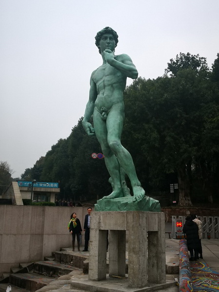 定制的米开朗基罗《大卫》雕塑的原模青铜复制品,经过近三年的联系沟通、反复商谈、原模制作、远程运输等一系列程序,12月14日,终于从意大利远渡重洋而来,在 大学城校区完成吊装。之后,学校还将对其基座进行大理石装饰,实现与意大利佛罗伦萨米开朗基罗广场中央的《大卫》雕像几乎相同的效果。