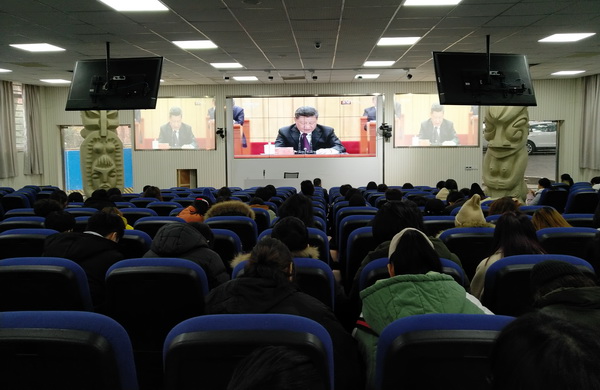 上午10时整,我校党政领导黄政、庞茂琨、张杰、苟欣文、焦兴涛、彭林权,机关全体干部,全校各党总支书记在虎溪校区五会议室集中收看了大会盛况,各教学单位、离退休党总支按照学校党委统一要求部署,分别组织本单位师生和离退休老同志集中收看了大会直播。