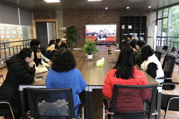 直播过程中,大家怀着激动的心情,聚精会神地收看大会实况,认真聆听习近平总书记的重要讲话。在之后的座谈会上,干部师生对习近平总书记重要讲话展开了热烈讨论,反响强烈。