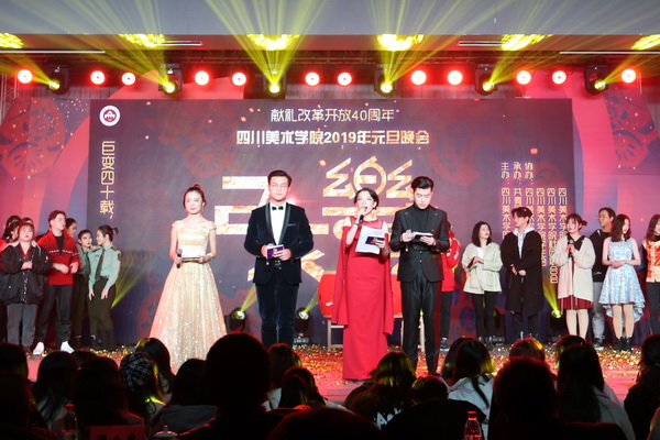 晚会节目形式多样、内容丰富、创意十足、精彩纷呈。开场曲以校大学生艺术团的情景歌曲点燃全场;版画系舞蹈《盛世欢歌》、艺术团歌曲《庆功酒》展现了改革开放40年的理想、40年的愿景、40年的拼搏,40年的奋进;雕塑系情景舞蹈《生命之光》、美术教育系情景创意舞蹈《戏游川美》、手工艺术学院情景剧《川美新闻联播》创意满满,动感十足,展现了一代又一代川美人孜孜不倦的艺术追求;油画系歌舞剧《一梦金陵》、美术学系舞蹈《秦淮景》、设计艺术学院小品《和平饭店》用丰富的肢体语言与艺术感染力,向在抗战中遇难的同胞,向那些勇于抗争,捍卫正义挺身而出的人们致敬;大学生艺术团街舞《盛夏光年》、建筑艺术系歌舞《不负芳华》、影视动画学院舞蹈《国色天香》开启同学们的逐梦旅程,致敬我们永不枯竭的美好青春;大学生艺术团和团委老师的舞蹈《踏歌.向前》,军歌朗朗,雄姿英发,向我们展现了和平年代,守卫我们的、仍有血肉的钢铁长城;公共艺术学院舞蹈《水的女儿》、影视动画学院舞蹈《国色天香》、中国画系歌曲《逆光》、新媒体艺术系歌舞《沧海敬英雄》向经典致敬,让晚会熠熠生辉,精彩连连。现场视频还向大家展现了川美学子追求艺术道路的心路历程,展示了天南海北的家长们及各院系对全校师生的新年祝福。
