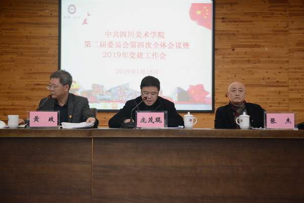 2019年是新中国成立70周年,是全面建成小康社会、实现第一个百年奋斗目标的关键之年,是改革开放再出发的重要起点之年。对于学校来讲,2019年的目标也很明确:持续抓好双一流建设。面对目标,要如何进一步加强党的领导,要怎么管党治党、怎么把党的建设抓实抓牢,为实现这些目标任务提供坚强的政治保证,黄政书记提出了六个方面要求。一是围绕“两个维护”抓实政治建设。二是围绕凝神聚魂抓实思想建设。三是建设忠诚干净担当的干部队伍。四是从严从实抓好作风建设。五是狠抓基层基础建设工作。六是巩固和发展“思政+艺术”探索。要推动学校这些目标任务落实,全校各级领导干部要身先士卒。一是要加强学习,二是舍得投入,三是抓主要矛盾,四是善于团结同志,五是要有钉钉子、涉险滩的精神,充满激情的全身心投入工作。要让人人敢担当、人人善作为成为新时代川美人的主旋律,要让想干事、会干事、干得成事在学校蔚然成风。