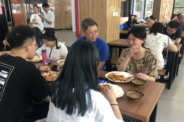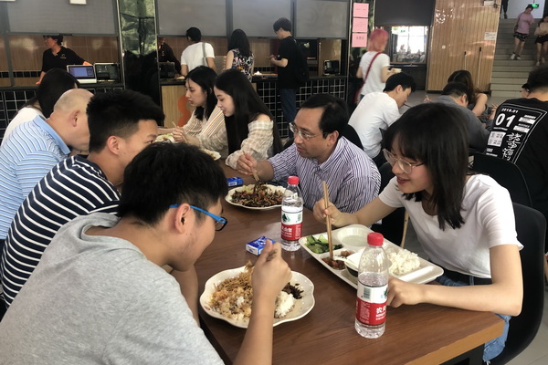 6月3日中午12时许,学校党委书记黄政,党委副书记、校长庞茂琨,副校长张杰、副校长彭林权在虎溪校区学生食堂与在食堂用餐同学们共进午餐。党政办、学工部、基建后勤处等相关部门负责人参加。