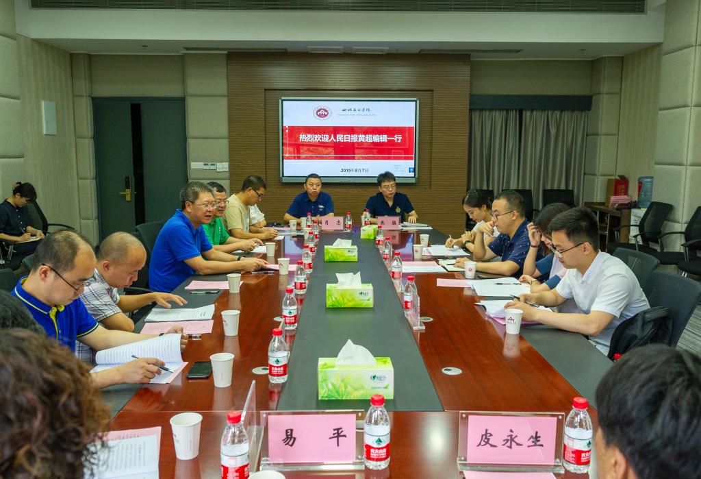 8月7日上午,人民日报二版(经济版)编辑黄超、文化教育版编辑管璇悦、社会版编辑周珊珊及人民日报重庆分社记者刘新吾一行4人,到我校调研“艺术助力精准扶贫”工作。我校党委书记黄政、校长庞茂琨、党委副书记左益以及党政办、宣传部相关人员热情接待。