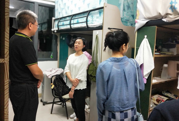 9月5日晚,学校党委书记黄政带领各二级学院分管学生工作党总支书记(副书记)、辅导员,学生处、保卫处、基建后勤处、国际交流与合作处等部门人员,走访了2019级新生学生宿舍,代表学校为新同学送去关怀与祝愿。