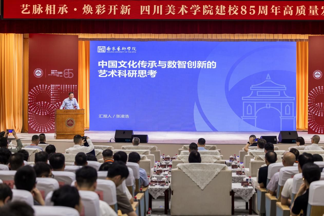 南京艺术学院院长张凌浩以“艺术+科技”交叉研究为核心,介绍该校依托“中国文化传承与数智创新哲社实验室”,构建非遗数字化模型及传统色彩智能体系,成果应用于国家文化公园建设并获文旅部认可。广州美术学院副书记宋光智提出“湾区艺术创新系统”,通过区块链文物数据库等实践,破解数智时代学科壁垒与产教脱节问题。天津美术学院副院长寇疆晖则展示“人工智能艺术学院”“海河艺术季”等创新举措,探索传统艺术与新质生产力转化路径。