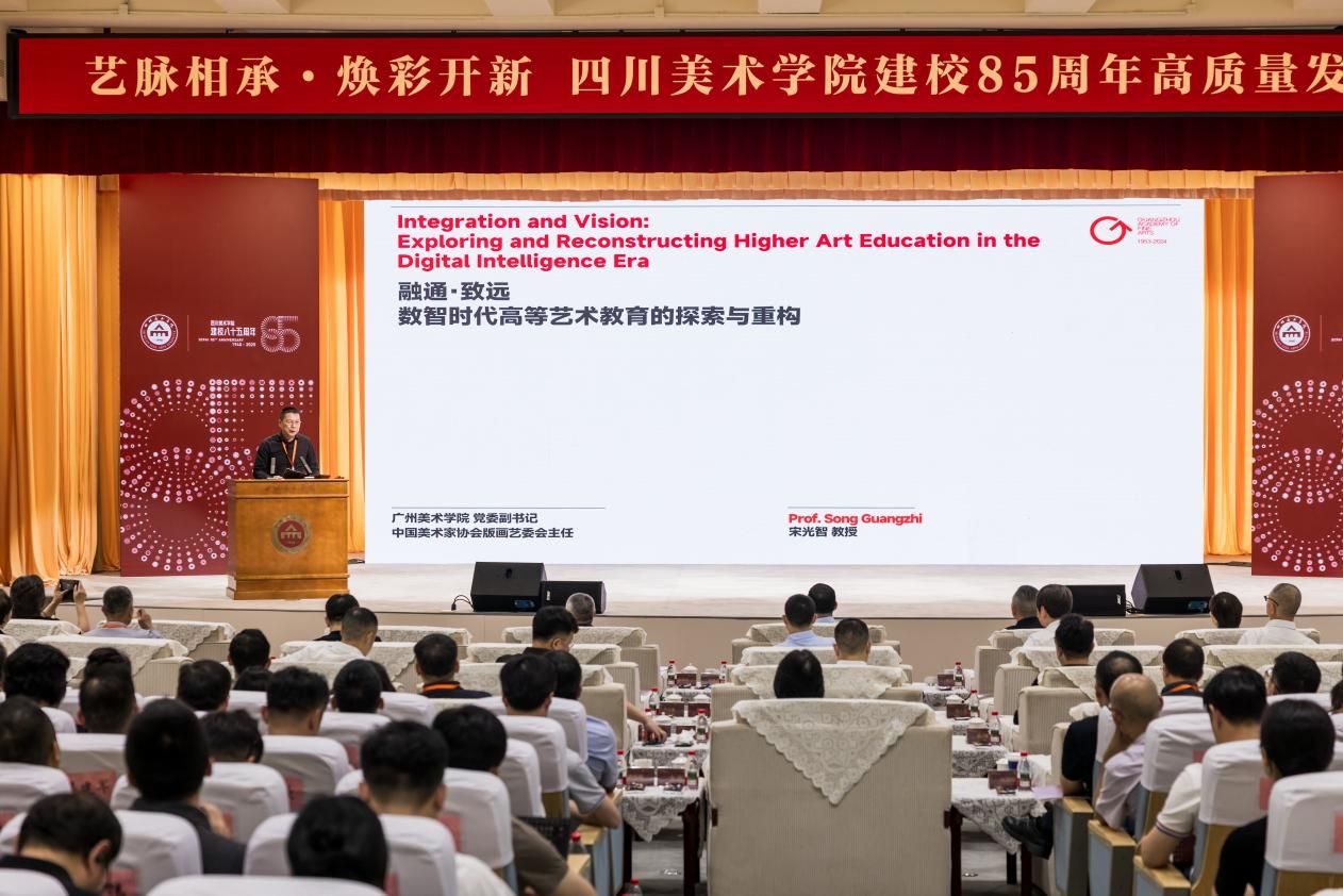 5月26日下午, 建校85周年“双一流”建设与高质量发展论坛在虎溪校区举办。作为 建校85周年校庆高质量发展系列活动的重要组成部分,论坛设置“数智赋能·艺科融合”“创新引领·美育新生”“文化自信·美美与共”三大主题单元。来自全国的专家聚焦相关前沿议题,共探艺术教育高质量发展新路径。我校党委书记唐青阳出席活动并作主旨发言,焦兴涛院长主持论坛。