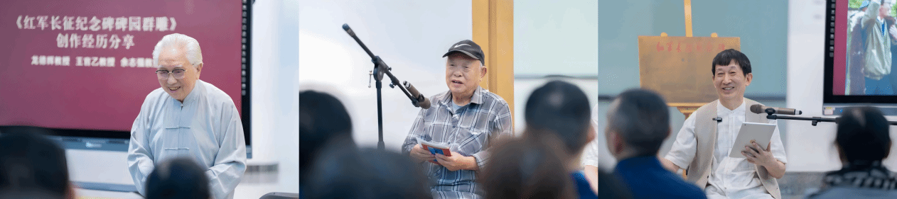 在主题性创作公开课环节,焦兴涛以经典作品为例,梳理了中国现代雕塑的发展历程——从宏大的历史叙事到关注历史进程中每一个个体的价值。龙德辉、王官乙、余志强分享了《红军长征纪念碑碑园群雕》的创作经历,重温了川美主题性创作的辉煌历史与深厚底蕴。雕塑家们始终在符合政治叙事表现历史的同时,在宏大主题中注入真实情感,持续深化对人的价值的关注,使对“人民性”的诠释始终扎根于具体鲜活的生命体验,进而在表达层面触动观众的心弦。