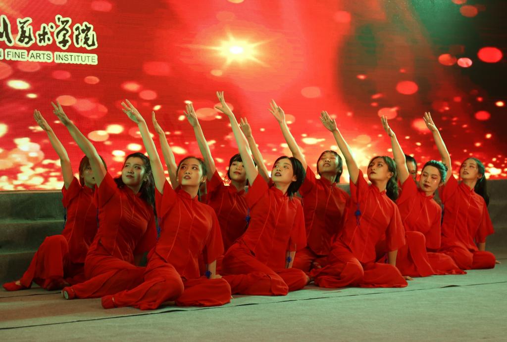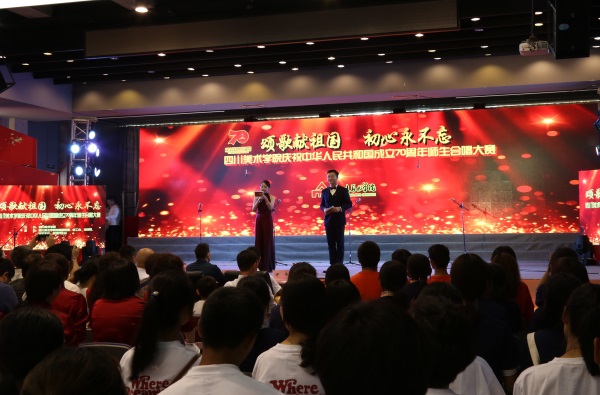 合唱大赛在川美版《我和我的祖国》MV的优美歌声中拉开帷幕。学校大学生艺术团带来的开场朗诵《我们都是川美人》,用青春与艺术的方式表达了对祖国母亲的热爱与祝福。