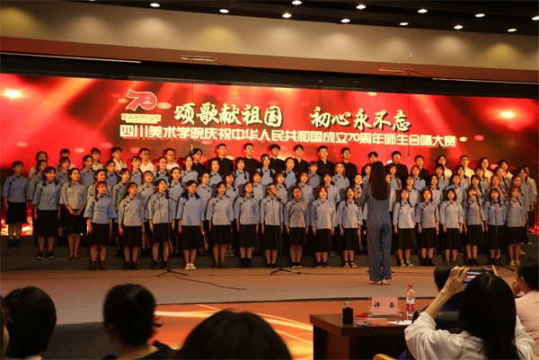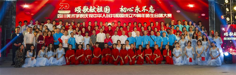 本次合唱比赛集艺术性、专业性、参与性于一体,从歌曲主题、音乐表现、配合效果、创意形式等方面都生动诠释了川美师生的精神风貌。经激烈比拼,造型艺术学院、建筑与环境艺术学院获得一等奖;机关党委、离退休党总支、艺术教育学院获得二等奖;设计学院、影视动画学院、中国画与书法艺术学院获得三等奖;公共艺术学院、实验艺术学院、艺术人文学院获得优秀奖。最后,在全场师生齐声合唱《歌唱祖国》的歌声中落下帷幕。活动结束后,校领导上台与演职人员合影留念。